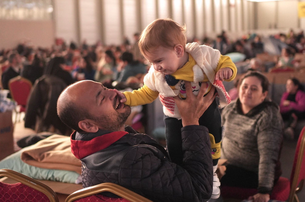 Antakya Odabaşı Mahallesi’ndeki 4 katlı İster Apartmanı’nda enkaz altında kalan aile enkazdan kurtulduktan sonra geldiği Adana’da TÜYAP Fuar alanına yerleşti.