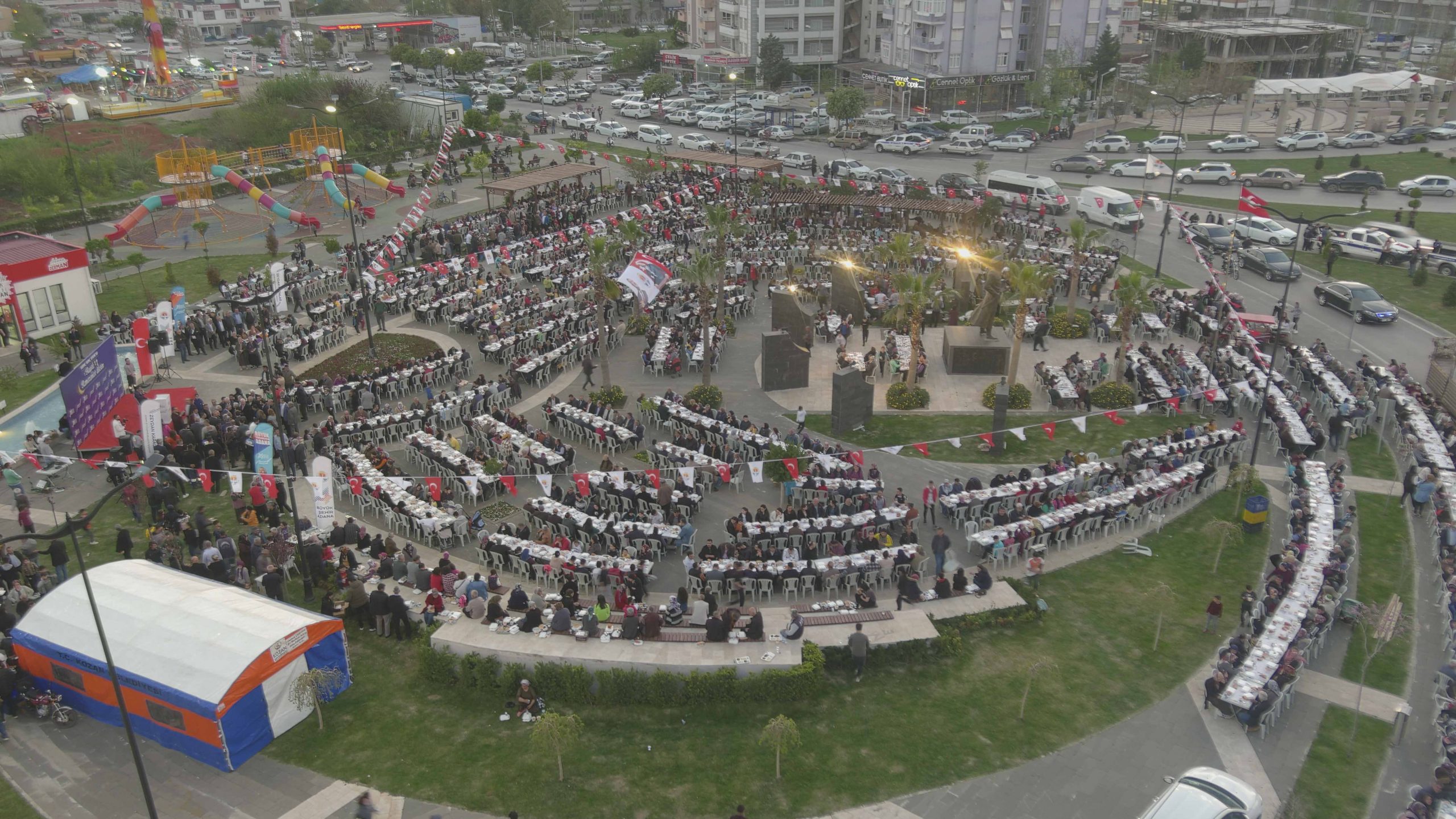 Adana Büyükşehir Belediyesi, Kozan Belediyesi ile birlikte, Şehit Asteğmen Mustafa Fehmi Kubilay Meydanı’nda iftar yemeği verdi. Kozanlıların yoğun katılım gösterdiği iftarda konuşan Adana Büyükşehir Belediye Başkanı Zeydan Karalar, Kozanlılara ilgilerinden dolayı teşekkür etti.