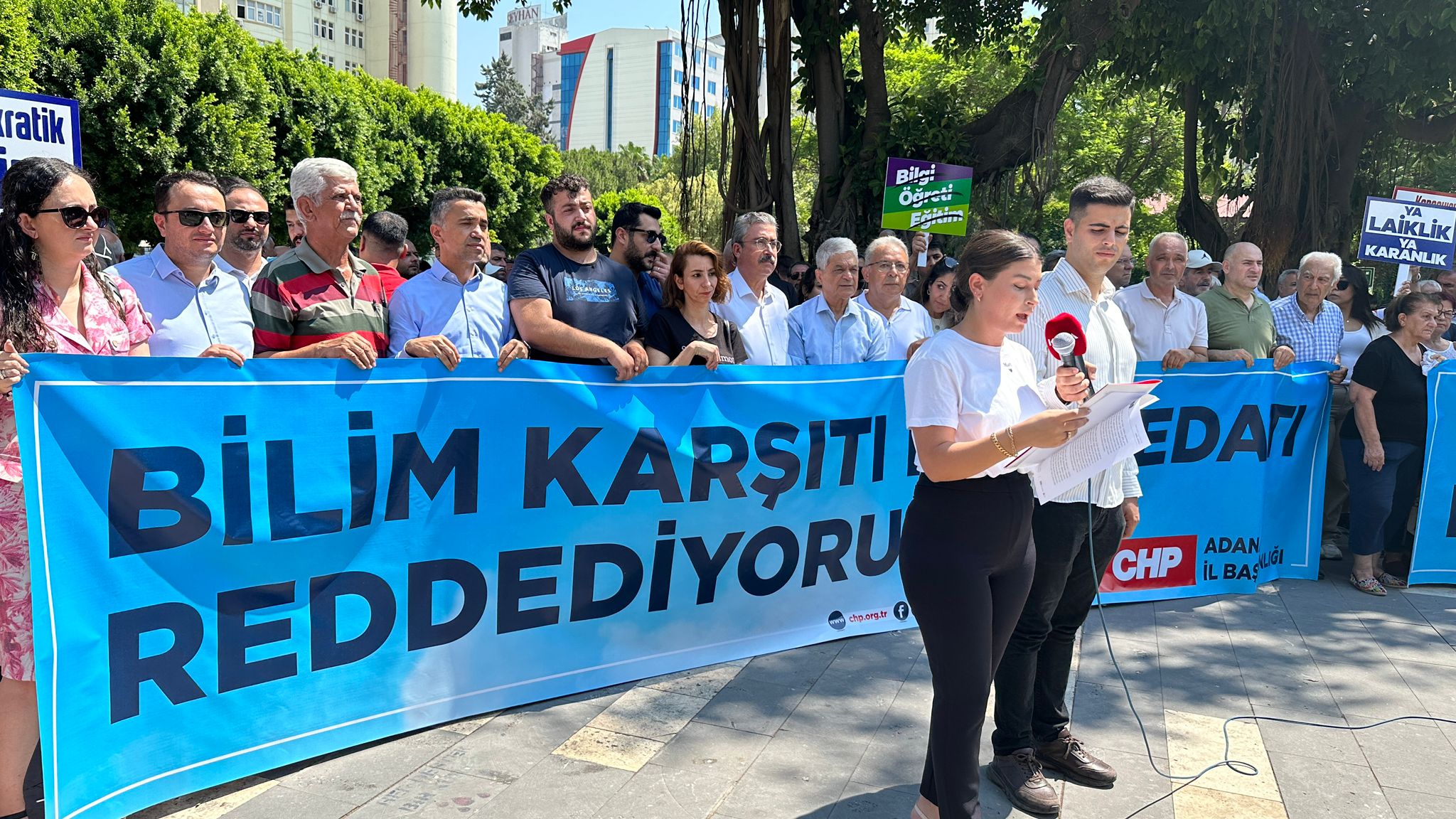 CHP Adana İl Başkanlığının İsmet İnönü Parkı’nda düzenlediği basın açıklamasına il yöneticileri, İlçe örgütleri, Karataş Belediye Başkanı Ali Bedrettin Karataş, kadın ve gençlik kolları üyeleri, STK temsilcileri, partililer ve çağdaş eğitimden yana olan vatandaşlar katıldı.