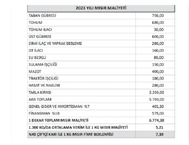 Adana Çiftçiler Birliği Başkanı Mutlu Doğru, bölgede 15 güne kadar başlayacak olan mısır hasadı öncesinde maliyet hesaplaması yaparak, üreticinin beklentisini kamuoyu ile paylaştı. Doğru, üreticinin fiyat bekletişinin 7.30 TL olduğunu bildirdi.