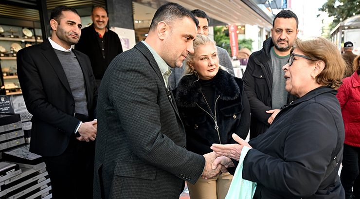Muhtar Polat’la birlikte Şehitler Bulvarı esnafını ziyaret edip, esnafla kucaklaşan Başkan Kozay, esnafın ve mahalle halkının taleplerini verdiği talimatlarla hızlıca çözüyor.