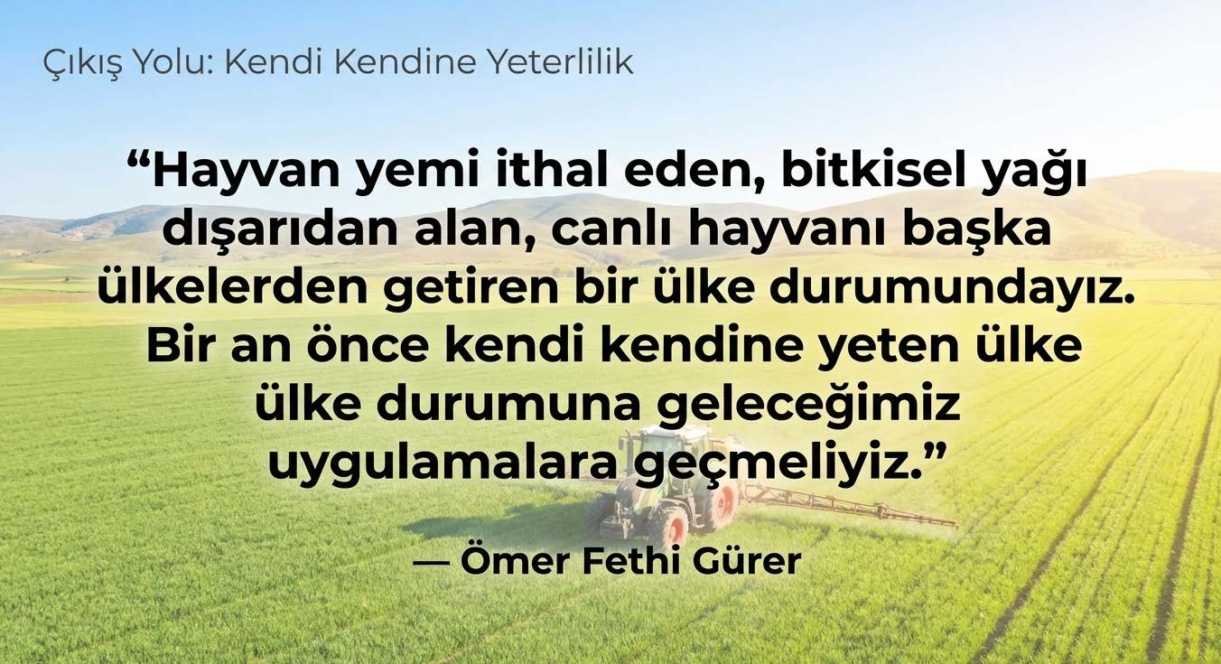 Ömer Fethi Gürer, “Hayvan yemi ithal eden, bitkisel yağı dışarıdan alan, canlı hayvanı başka ülkelerden getiren bir ülke durumundayız. Bir an önce kendi kendine yeten ülke durumuna geleceğimiz uygulamalara geçmeliyiz” dedi.