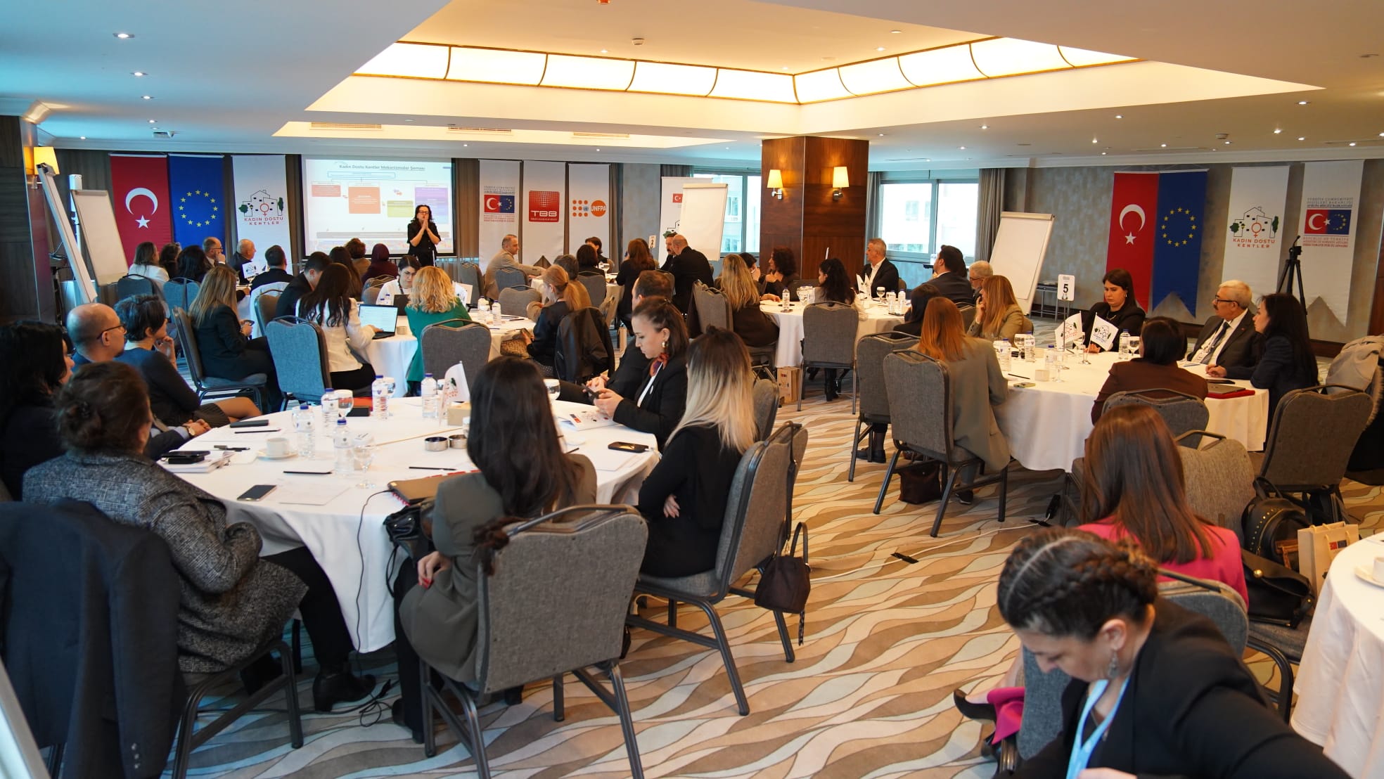 Avrupa Birliği’nin finansal desteği, Birleşmiş Milletler Nüfus Fonu (UNFPA) liderliği ve Türkiye Belediyeler Birliği (TBB) ortaklığında yürütülen Kadın Dostu Kentler (KDK) Programı’nın 3. fazı kapsamında, 6-7 Nisan tarihlerinde Ankara’da Üst Düzey Yerel Yönetim Çalıştayı düzenlendi. Türkiye genelinden 25 belediyenin katılım sağladığı çalıştayda, kadın-erkek eşitliğinin yerel yönetim politikalarına entegrasyonu ve belediyeler arası iş birliğinin güçlendirilmesi ele alındı.