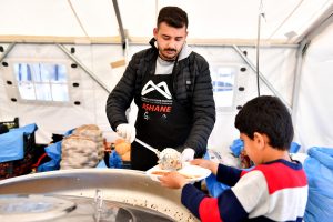 Konteyner kent çalışmalarının yanı sıra Büyükşehir Belediyesi ekipleri, bölgedeki depremzedeler için sıcak yemek ve ihtiyaç malzemesi temini hizmetini de sürdürüyor.
