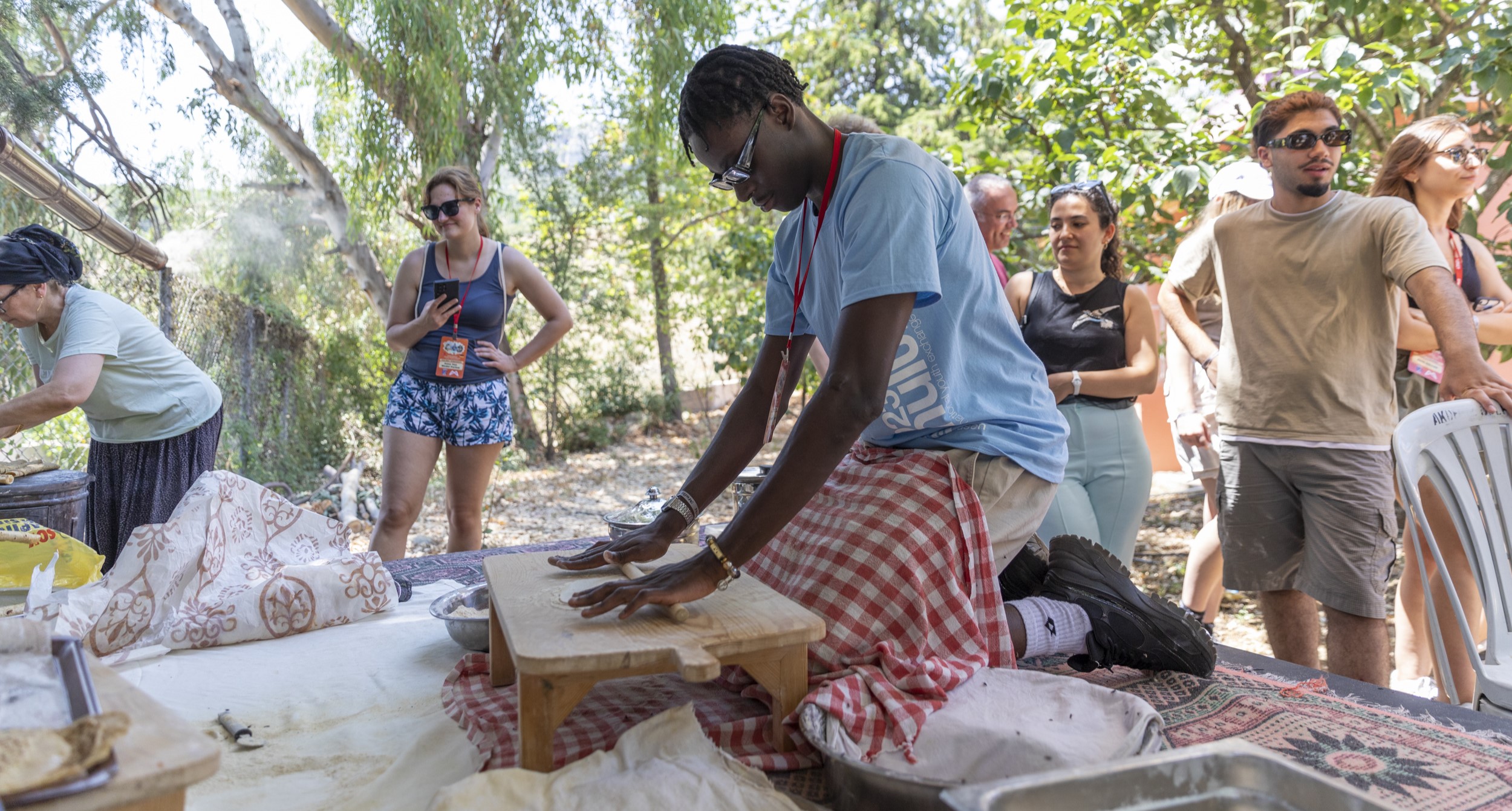 Kentin tarihinden mimarisine, sanatsal faaliyetlerinden yemek kültürüne kadar pek çok etkinliği deneyimlemeyi kapsayan değişim programında öğrencilerin ilk durağı Darısekisi Örnek Köy’ü oldu. Mersin’e özgü yöresel lezzetlerden sıkma ve gözlemenin tadına bakıp hamur açmayı deneyen öğrenciler, daha sonra Darısekisi’ni gezerek hatıra fotoğrafı çekildiler.