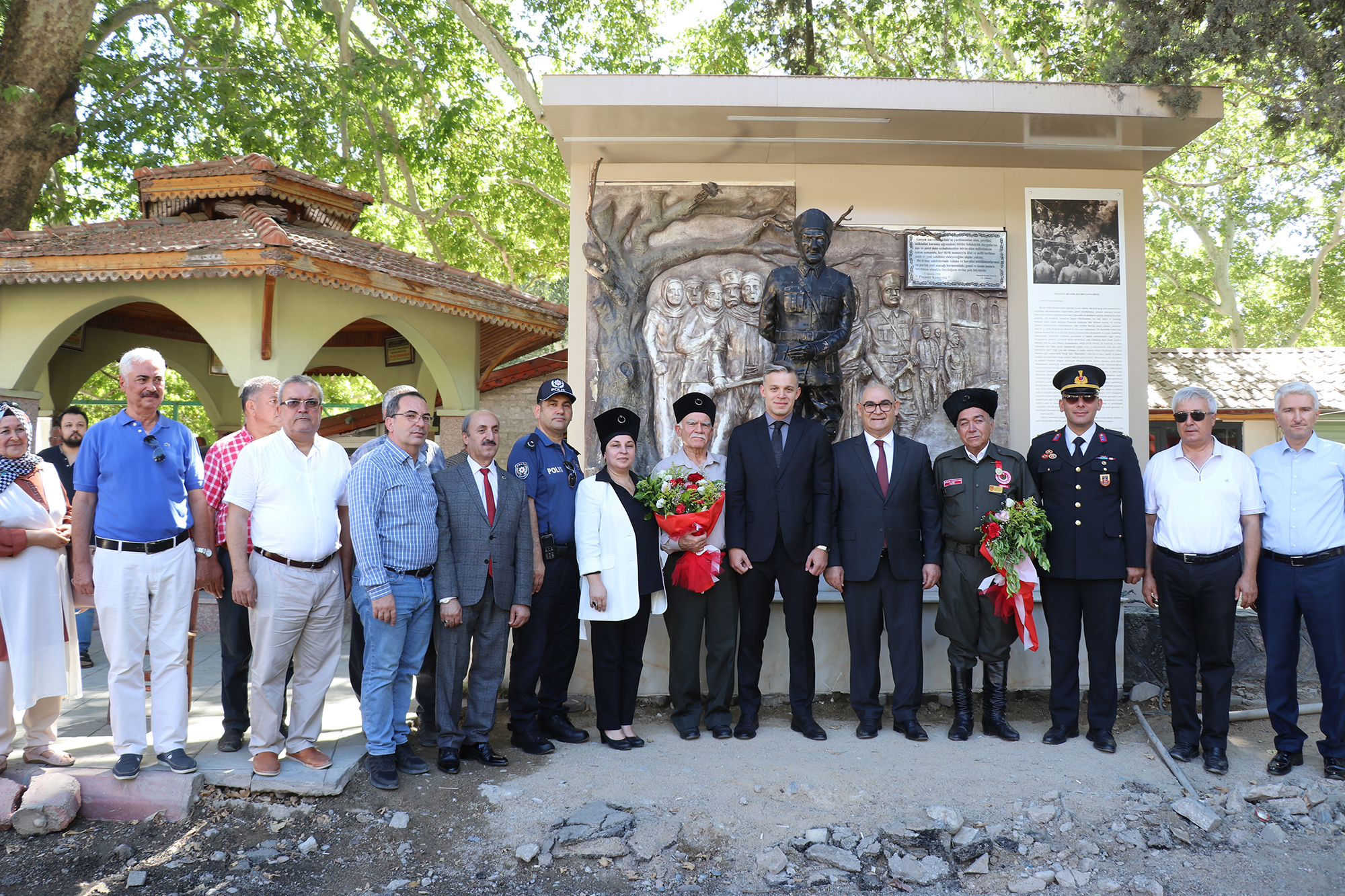 Konuşmaların ardından Kaymakam Fatih Karamahmut ve Belediye Başkanı Mustafa Çay Pozantı Kongresi rölyefine çiçek sundu.