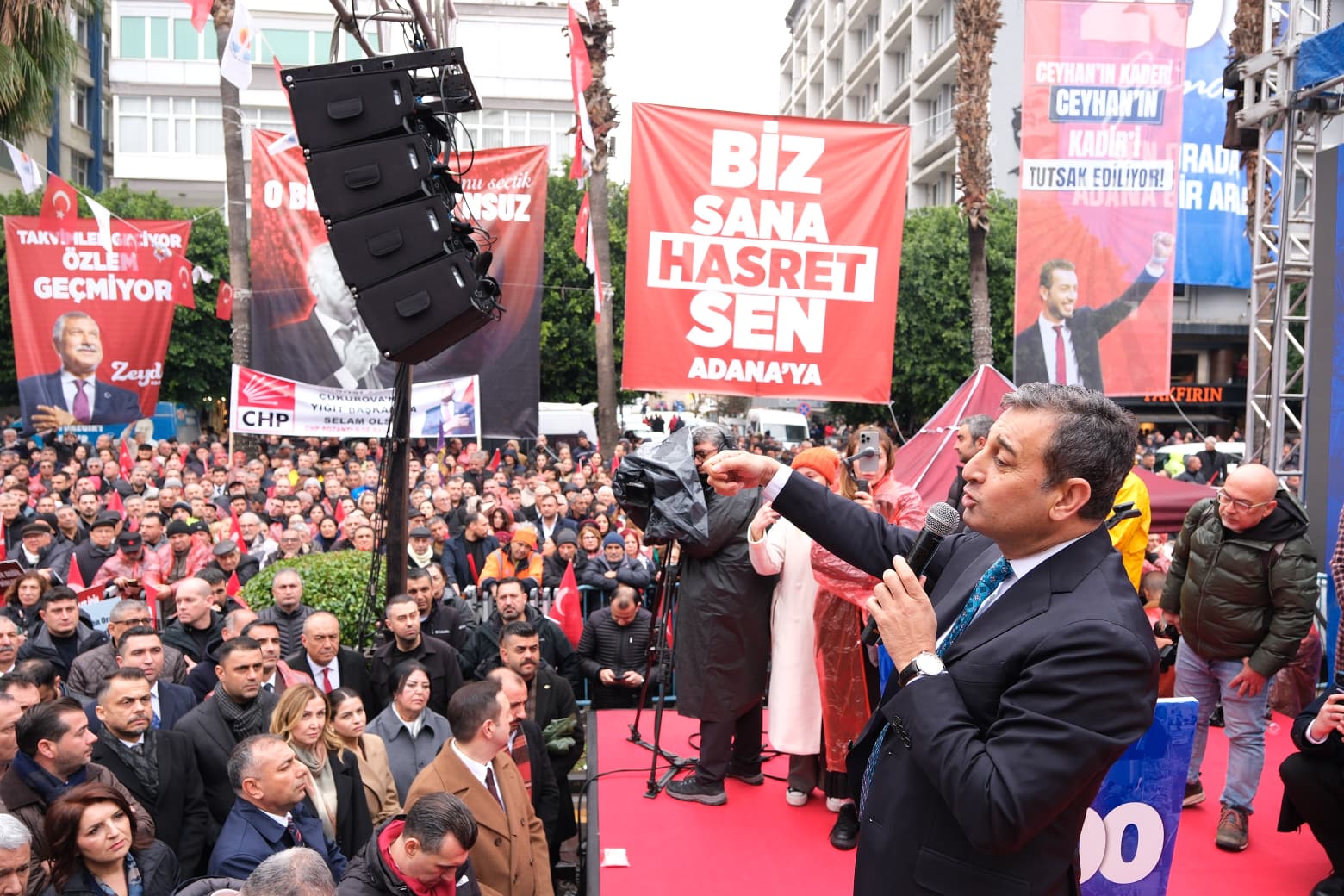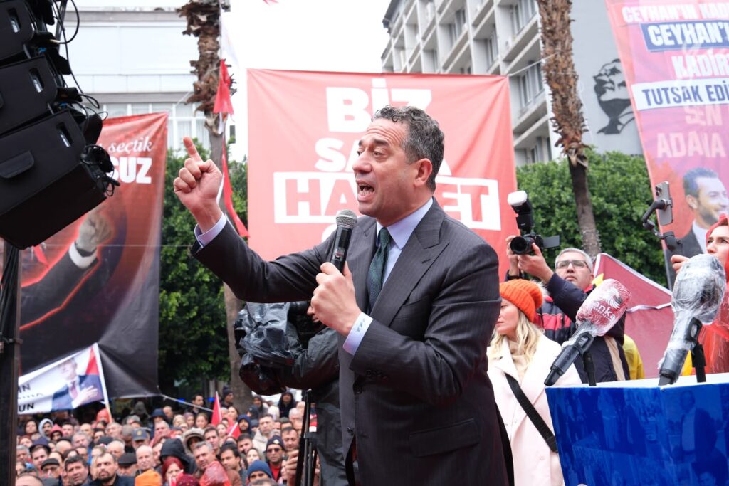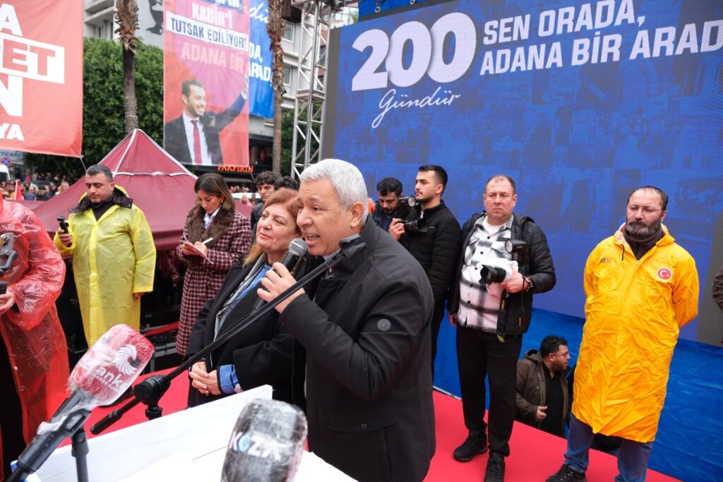 CHP Adana Milletvekili Ayhan Barut, “Tek adam dayatmasıyla kanunsuzluğun hüküm sürdüğü, haksız yere tutuklanan belediye başkanlarımız için, başta Sayın Adana Büyükşehir Belediye Başkanı, Adana gibi Başkan Zeydan Karalar için, Ceyhan’ın kaderi olan Kadir Aydar için, Seyhan’ın güçlü sesi olan Oya Tekin için buradayız. Hep birlikte tek ses veriyoruz. Asla boyun eğmiyoruz. Hiç kimseden korkmuyoruz. Zulme direnmek haktır. Direnenler de mutlaka kazanacaktır” diye konuştu.