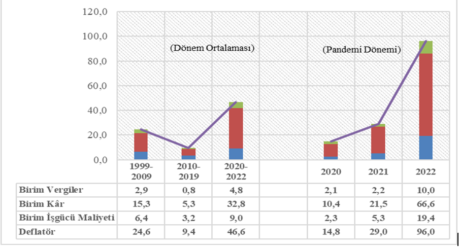 Yurtiçi enflasyonda rekor, yüzde 96 ile 2022 yılında kırılırken, kırılan bu enflasyon rekorunun 67 puanı (yüzde 69’u), yine şirket kârlarındaki artıştan kaynaklanıyor.